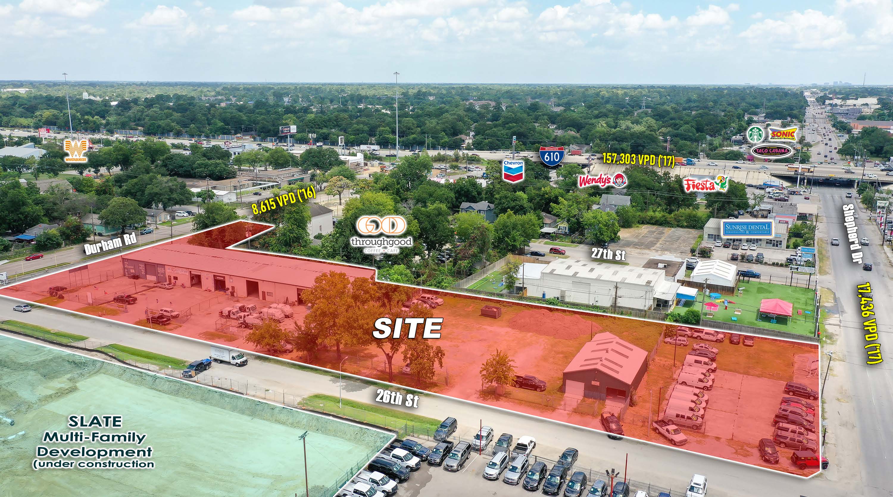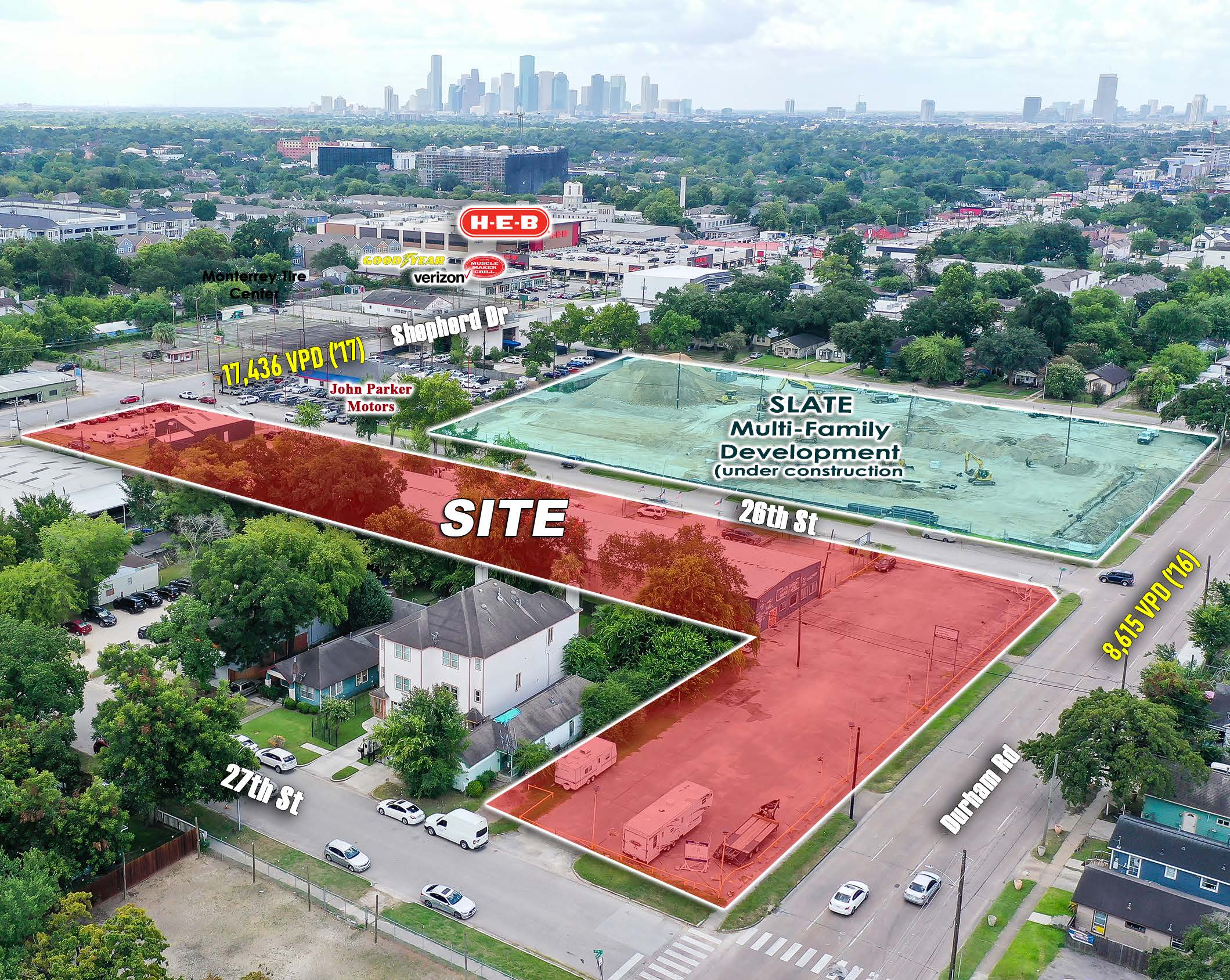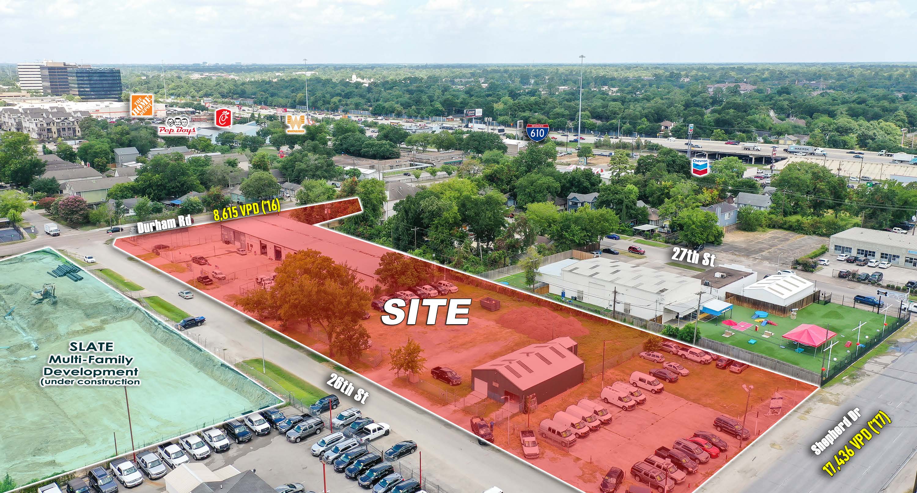 Extremely rare tract with frontage on both Shepherd & Durham