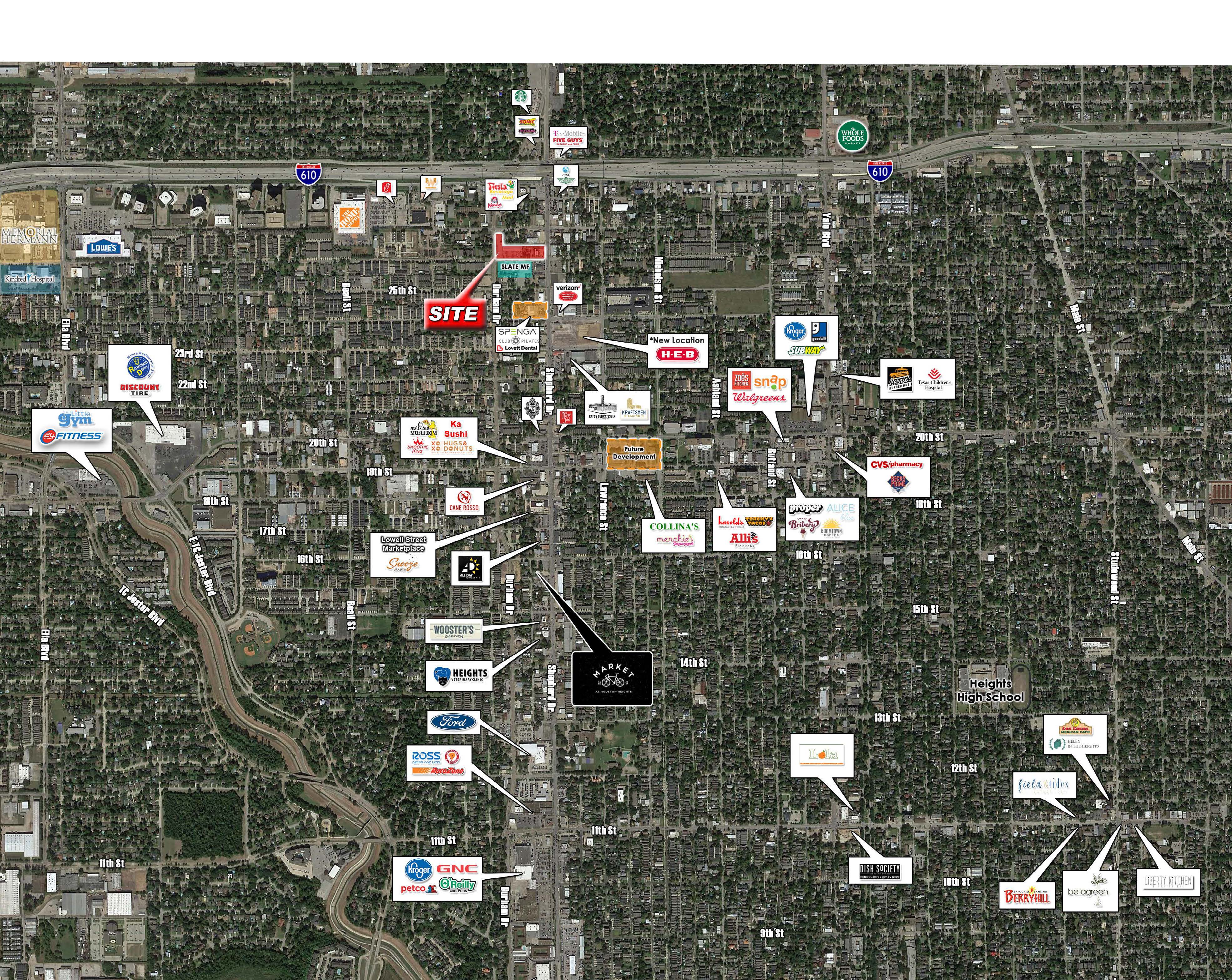 Only two blocks north of the new HEB and The Heights Hike & Bike Trail
