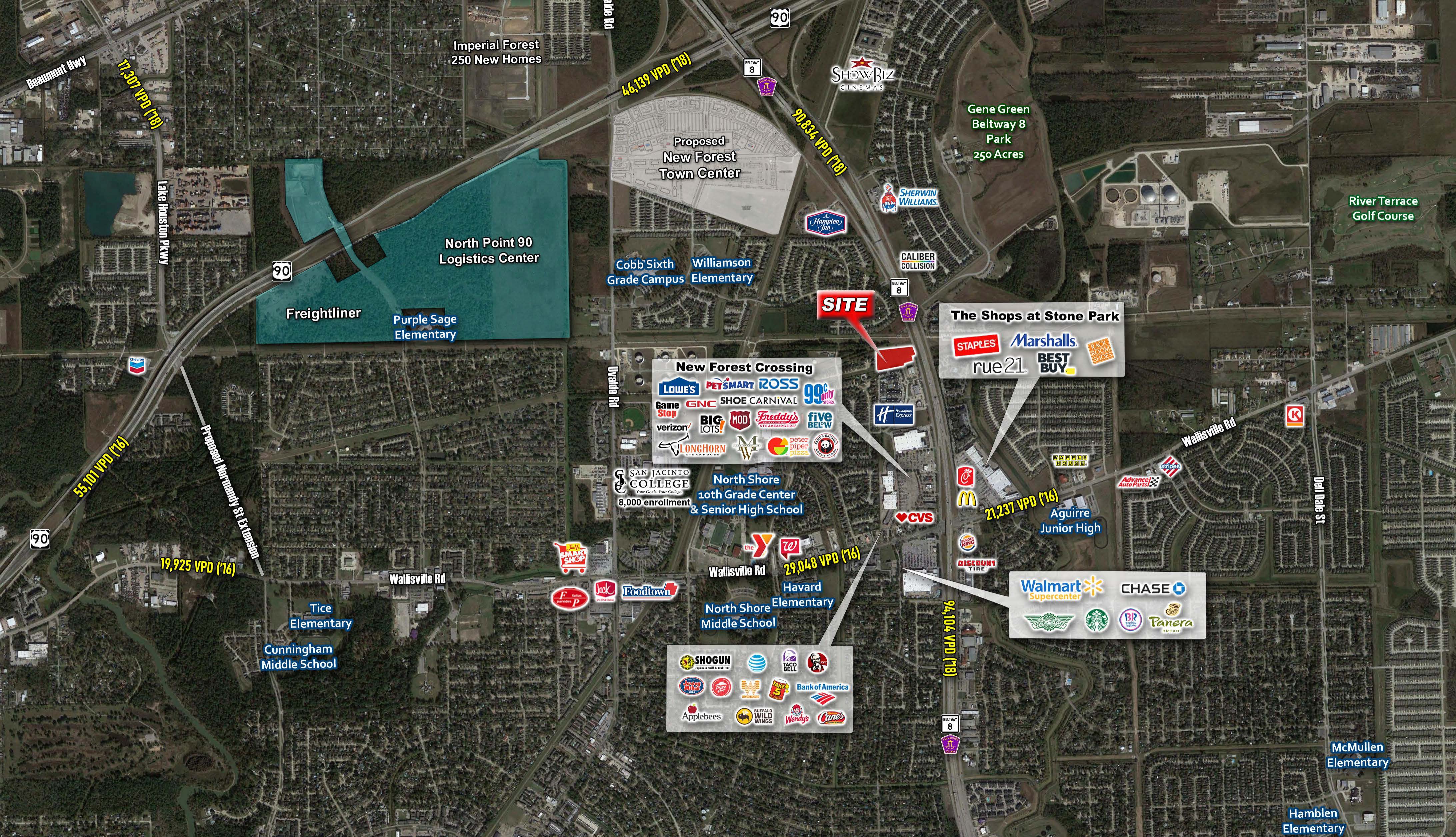 Close proximity to the $1.2B Bayport Container and Cruise Terminal, Walmart’s 4M SF distribution complex. 7 minutes from the Port of Houston and the Houston Ship Channel. +/- 1 mile from the North Campus of San Jacinto College.